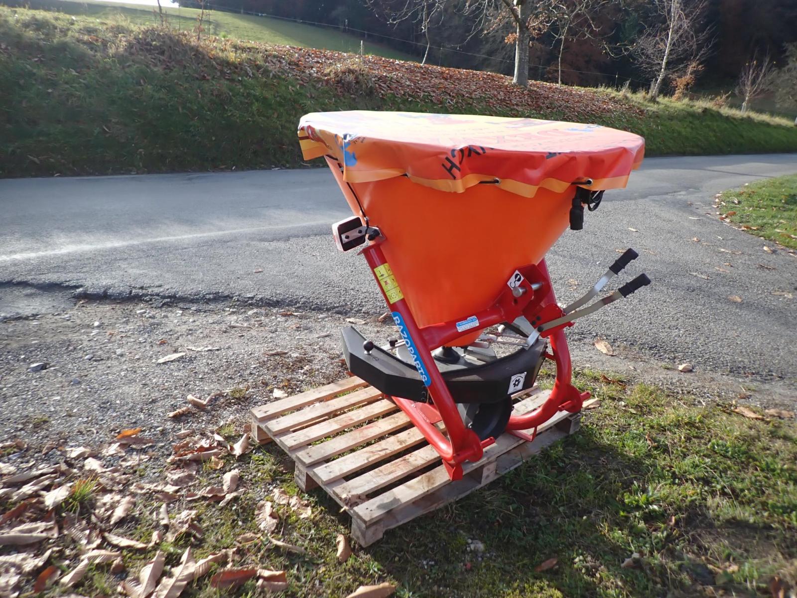 3 Stück Salz- und Sandstreuer für Traktor 3-Punkt Kat. 1 + 2. Passend an alle Kleintraktoren, Traktoren oder Vierradmäher. Sand- und Salzstreuer mit Antrieb über Gelenkwelle. Trichter aus Kunststoff. Querwinkel-Mischwerk, Streuscheibe aus Kunststoff mit 3 Schaufeln aus Edelstahl. Wartungsfreies Ölbadgetriebe. Mech. Schieberbetätigung. Komplett mit Beleuchtung und Gelenkwelle. Inhalt 330 Liter, Nutzlast 430 kg, Streubreite 1-4 m.
